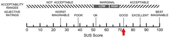 - Bangor, A.; Kortum, P.; Miller, J. Determining what individual SUS scores mean: Adding an adjective rating scale. J. Usabil. Stud. 2009, 4, 114–123. [Google Scholar]