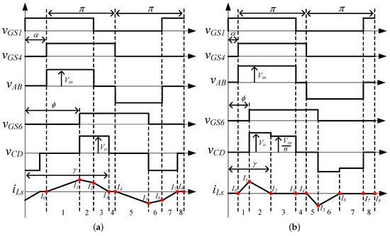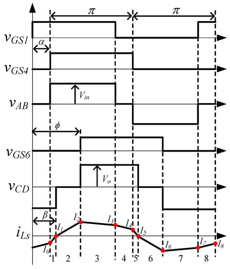 When in Mode B, the converter works at the boundary condition (6) between Mode A and B. At this boundary, the secondary H-bridge works in synchronous rectification mode: