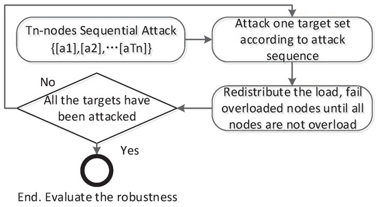 Flow chart of the sequential attack process in a load-induced Cyber-Physical system.