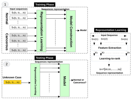 In our experiments, we calculate the parameters of LTR two times for each input sequence: one for the forward direction and another for the backward direction . Prior to the classification stage, we normalize each feature vector using the norm. In the classification stage, we input the feature vectors of normal and cancerous cases into the MLP classifier to construct a classification model.