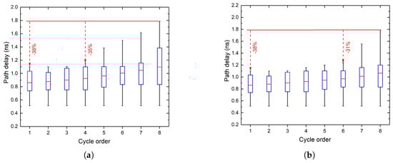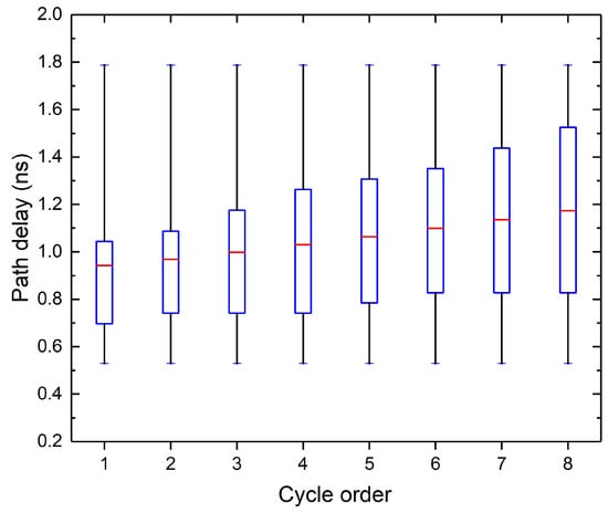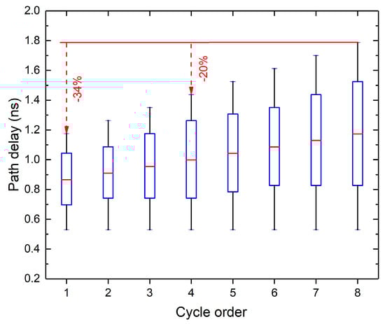 The modification in the circuit block alter the path delay distribution, the critical path delay increases linearly along with the cycle order, as shown in Figure 5. The largest delay difference can reach up to 0.78 ns, which is nearly a reduction.