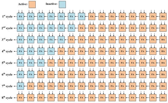 The state change of full adder in the accumulator circuit for an 8-bit distributed arithmetic (DA) computation.