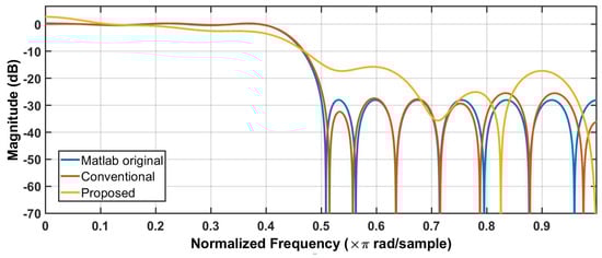 - Choi, J.H.; Banerjee, N.; Roy, K. Variation-aware low-power synthesis methodology for fixed-point FIR filters. IEEE Trans. Comput.-Aided Des. Integr. Circuits Syst. 2009, 28, 87–97. [Google Scholar] [CrossRef]