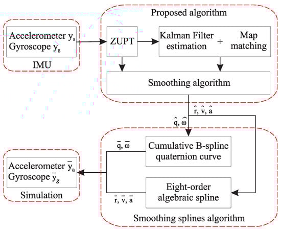 The proposed filtering algorithm is illustrated in Figure 2. To further reduce the estimation errors of the Kalman filter, the smoothing algorithm in [] is applied to the Kalman filter estimated values.