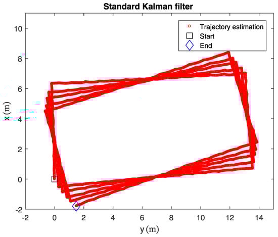 Rectangle walking estimation for five laps using a standard Kalman filter.