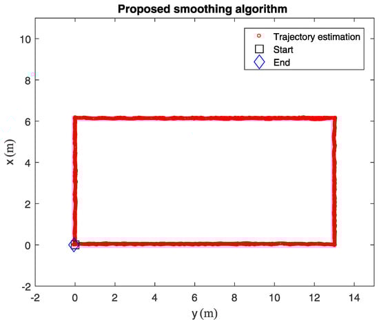 Rectangle walking estimation for five laps using the proposed smoothing algorithm.