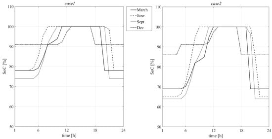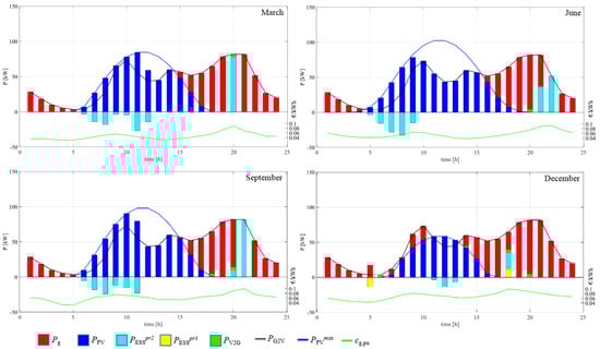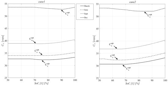 - the EMC uses the alternative sources (PV, V2G, S-ESS) only if economically convenient. Thus, the maximum operative cost of the system is obtained when the full energy provision is provided by the grid;