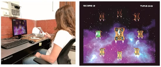 The experimental setup consisted of a 3D haptic interface (Novint Falcon, Washington, PA, USA) and a game scenario that was developed using the Unity3D game engine.