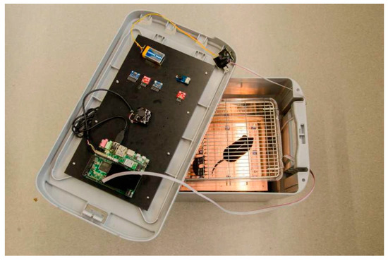 In the scientific literature, there are few designs of transport boxes that incorporate sensors to infer the stress level of the animal. A handling device for safely moving wild rats with physical partitions but without sensors is presented in [34]. A simple container, without sensors, consisting of a propylene tube, a high-efficiency particulate aerosol (HEPA) filter, and a rubber glove for transporting small animals to magnetic resonance imaging is described in [35].