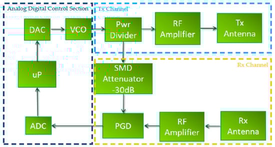 The Analog/Digital control section, used to process the signal backscattered from a chipless tag, is composed by: