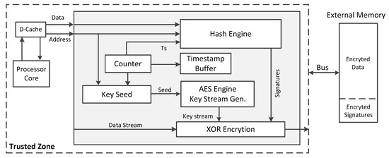 - Rogers, A.; Milenkovic, A. Security extensions for integrity and confidentiality in embedded processors. Microprocess. Microsyst. 2008, 33, 398–414. [Google Scholar] [CrossRef]