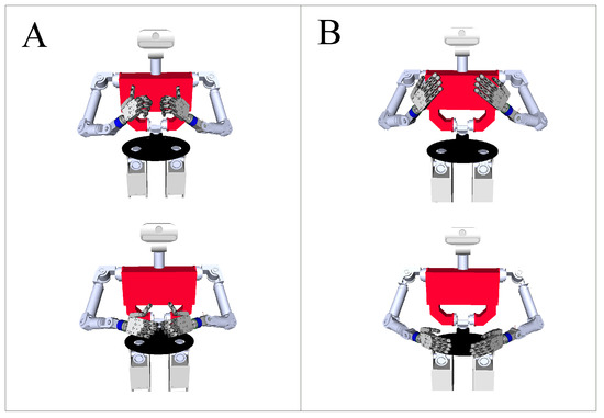 - Gago, J.J.; Victores, J.G. Desarrollo e Integración de Mano Robótica Antropomórfica en el Robot Humanoide TEO. Bachelor’s Thesis, Dept. Sist. Autom., Universidad Carlos III de Madrid (UC3M), Madrid, Spain, 2018. [Google Scholar]