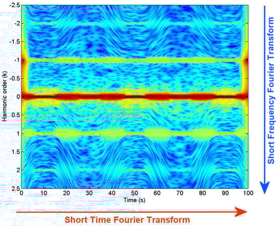An alternative option is to replace the STFT transform in HOTA by the short-frequency Fourier transform (SFFT), as in [6]. SFFT generates a time-frequency Gaussian window which is displaced along the frequency axis, instead of the time axis (Figure 1). Both the STFT and the SFFT transform generate the same time/frequency representations, although the SFFT has speed computing advantages when applied to fault diagnosis of IMs, as will be shown in Section 4.1.