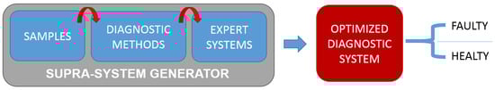 As presented in the previous sections, fault representative features finding methods and expert systems need to be optimized to obtain an acceptable diagnostic system. Finding the best fitting is not a trivial task since the accuracy of the expert system depends critically on the selection of its parameters. Therefore, to perform these tasks, in this paper, an autonomous system (the supra-system) is proposed. It is able not only of generating fault diagnostic systems, but also to optimize them through a set of fault representative features finding methods (Figure 5).