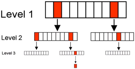 The sharpness of the fault components is calculated with the mean value of the amplitude in the frequency range between the fault components ( and ) and the main component. In the proposed system, the search for the best window size ratio has been optimized using a binary search algorithm [21], which is more specialized than a linear search algorithm.
