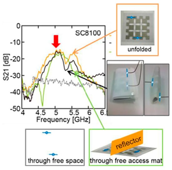 In addition, by wearing a sheet-like waveguide fabricated from a flexible material in a robot wearing various sensors including GPS, it is possible to remove the cable between the sensors wound around the robot and measure the size of the robot, an application that gives a conceivable degree of freedom of movement. Studies on wearable antennas using conductive fabrics and the like are actively conducted, and the technology can be applied [,]. There is also no need to wear an antenna at the bottom of the shoe to take out card-type electronic money, but it is possible to ride a train by stepping on the vicinity of the ticket gate, or an application that charges the card by just standing up.