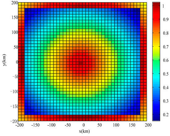 In this paper, , , , , , and the width of the marginal region of is 20 km. The distribution of monitoring priority in domain is shown in Figure 2.