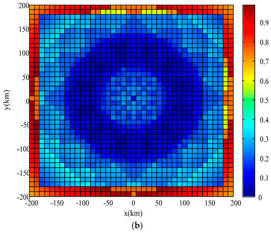 The target detecting probability in is shown in Figure 9a, and the target detecting risk in is distributed as shown in Figure 9b.