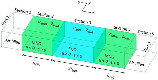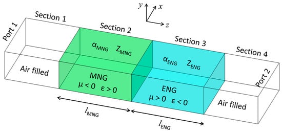 On the other hand, this problem does not arise when one of the metamaterials is continuous. For example, Baena et al. [] use a SRR waveguide and an empty cut-off waveguide for MNG and ENG behavior respectively; lMNG and lENG are discrete and continuous respectively.