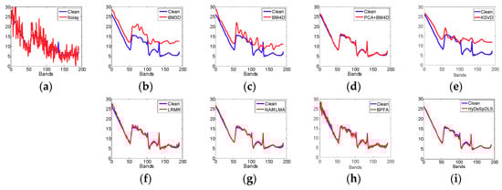 15], were applied to HSIs. However, the above denoising methods fail to consider the high correlation between spectral bands and always produce low-quality results. To take advantage of the correlation between spectral dimensions, a principal component analysis (PCA) combined with the block-matching 4D filtering method (PCA + BM4D) was proposed in Reference [
