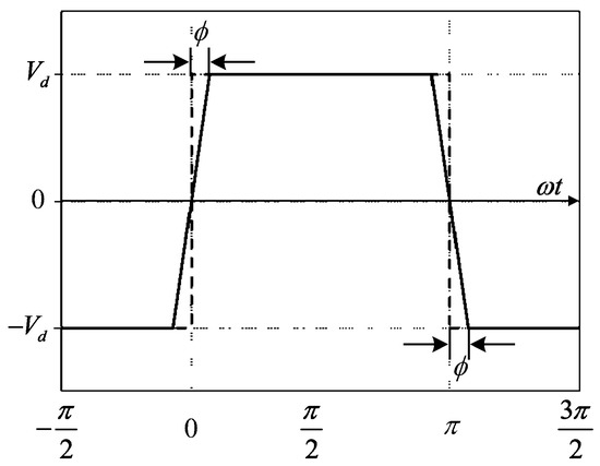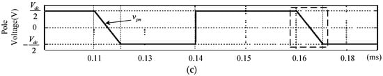 In this paper, the dead-time of Equation (2) includes the ON/OFF propagation delay in order to be simply expressed as . Additionally, the conduction voltage drops across the diode and switch are excluded from the effect of dead-time because they are negligible compared to the DC-link voltage level.