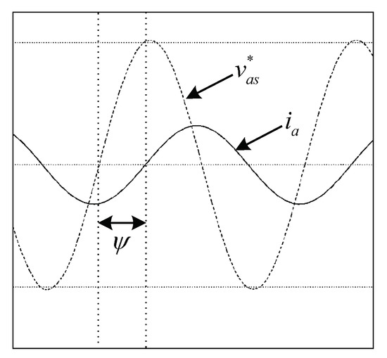 Equation (3) is expressed as the average phase voltage error by APVE [2], and Equation (4) represents the average phase voltage error due to the dead-time on the synchronous reference frame d-q axis by the Fourier series expansion [5,11], where are electrical angle, electrical angular velocity, are d-, q-axis current respectively and is the phase angle between q-axis and three-phase current vector as shown Figure 3.
