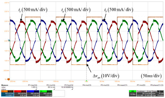 Figure 32 shows the current THD according to the current control frequency when the proposed DTCS is employed. In Figure 32, it can be seen that the current THD increases as the current control frequency increases, because it cannot synthesize the exact trapezoidal voltage waveform due to the limit of the fixed switching frequency. Therefore, with increased control frequency, the current THD increases due to the imperfect TCV.
