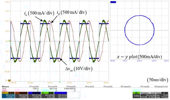 Figure 29 demonstrates the currents waveforms on the stationary reference frame when the proposed DTCS is applied. The currents waveform on the x-y plot is closer to the ideal circle than the waveforms in Figure 26 and Figure 27. Additionally, the currents waveform in Figure 30 appear closer to the circle than in Figure 27 and Figure 28 but it is impossible to draw the ideal circular waveform as proposed DTCS’s.