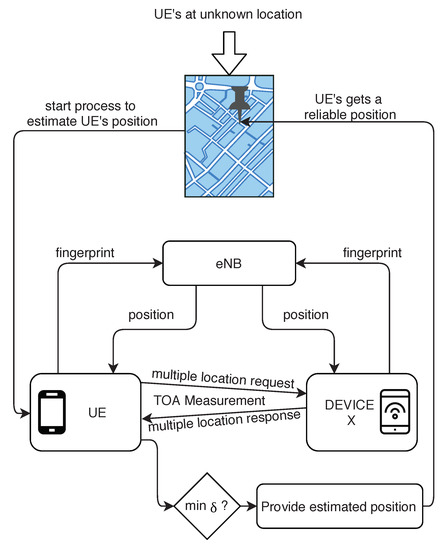 Out of the several measurements device A can select fingerprint positioning response from the eNB containing minimum error indicator () to increase the positioning confidence. If device A is unable to make a conclusive decision from the process, it should be satisfied with the position information received from eNB. Figure 6 shows the flowchart of the proposed method.