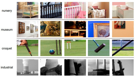 - Quattoni, A.; Torralba, A. Recognizing indoor scenes. In Proceedings of the IEEE Conference on Computer Vision and Pattern Recognition (CVPR), Miami, FL, USA, 20–25 June 2009. [Google Scholar]