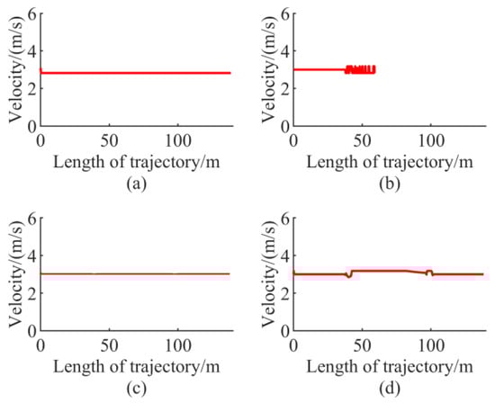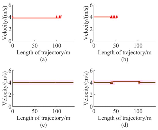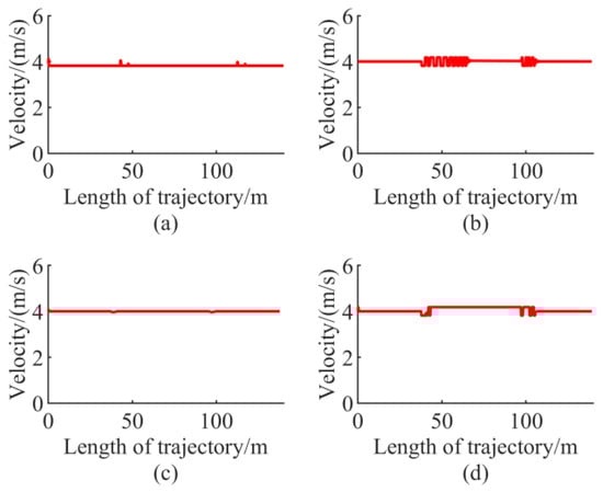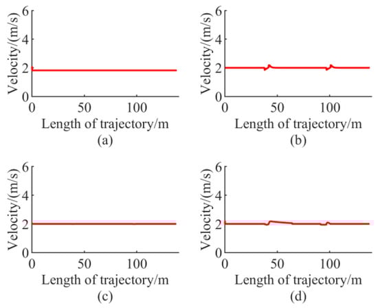 The velocity when velocity is 2 m/s. (a) LMPC. (b) LEMPC. (c) NMPC. (d) NEMPC.