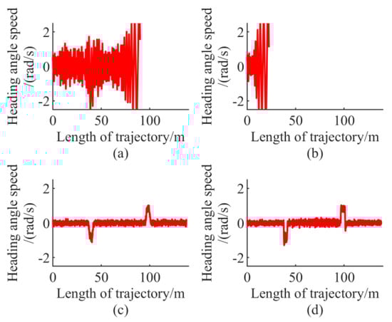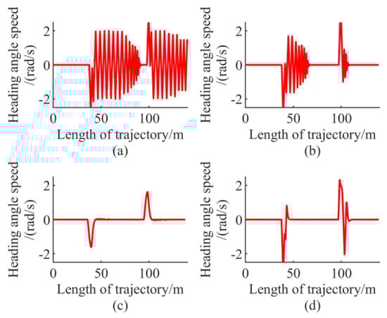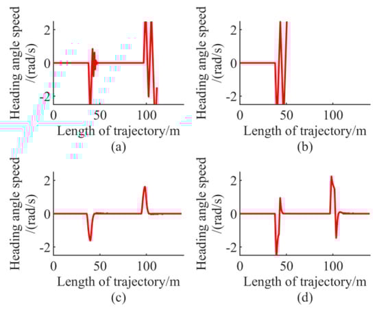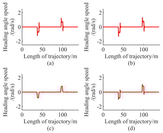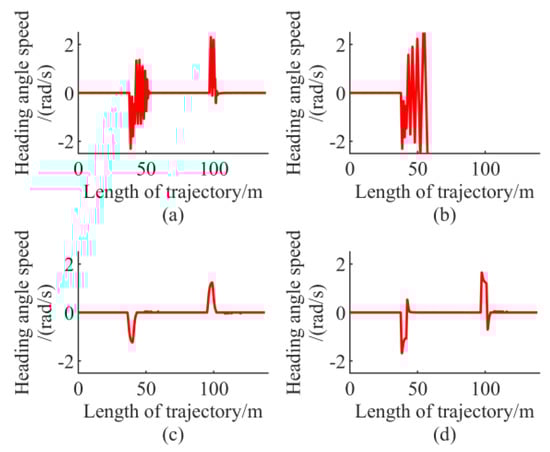 The heading angle speed of the final set of comparison. (a) LMPC. (b) LEMPC. (c) NMPC. (d) NEMPC.