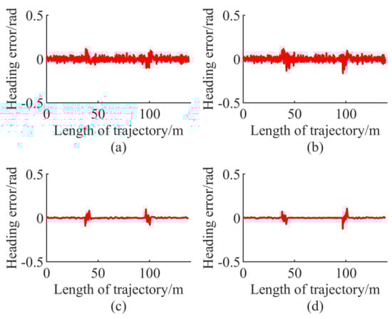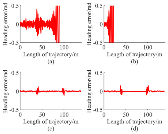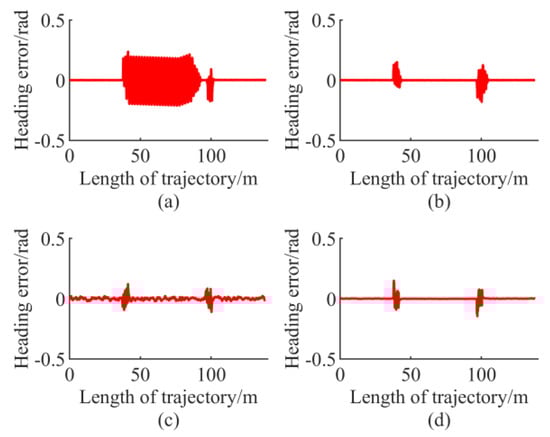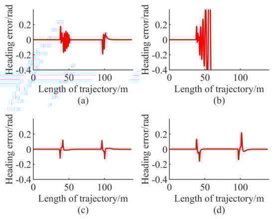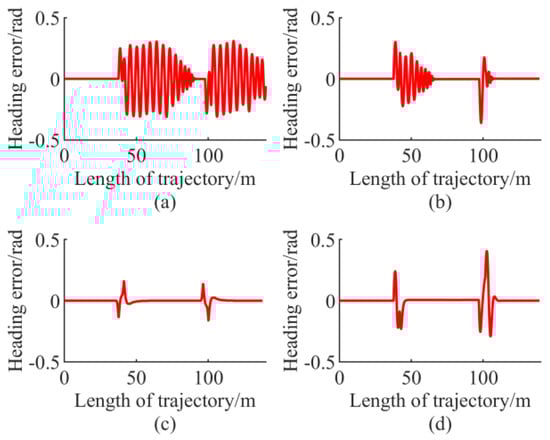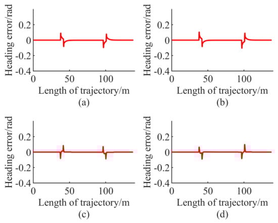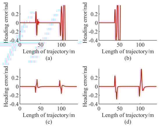 The heading error of the final set of comparison. (a) LMPC. (b) LEMPC. (c) NMPC. (d) NEMPC.