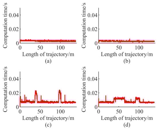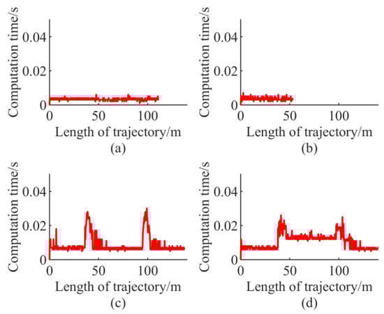 The computation time of the final set of comparison. (a) LMPC. (b) LEMPC. (c) NMPC. (d) NEMPC.