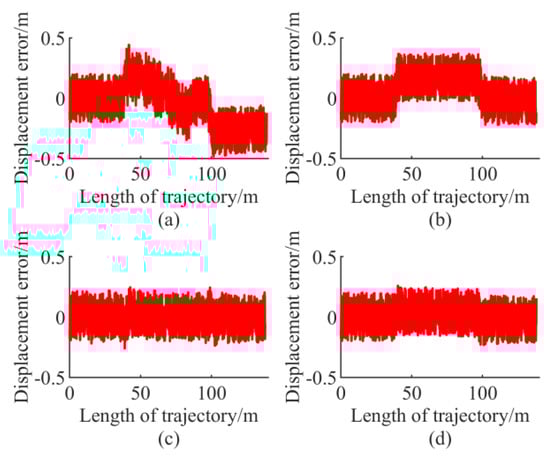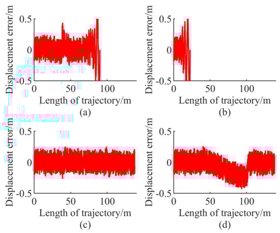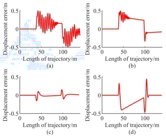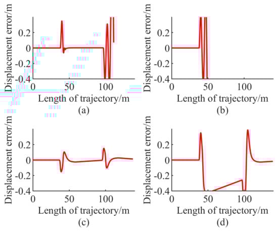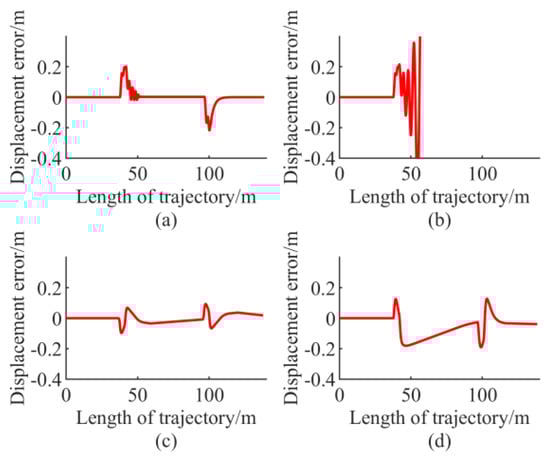 The displacement error of the final set of comparison. (a) LMPC. (b) LEMPC. (c) NMPC. (d) NEMPC.