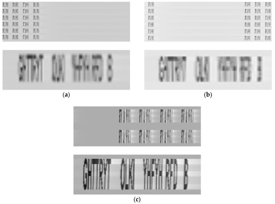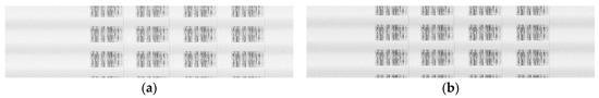 As we can see, the xerographic printing technology of a photosensitive drum illuminated by LED arrays, which is used in these printers, has significant characteristics from the point of view of electromagnetic protection of the processed data. The reconstructed data do not directly contain characteristics that would facilitate their identification, as is the case with conventional laser printers for the same printing modes [22]. Even the use of digital image processing—such as an extension of pixel amplitude histogram, pixel amplitude thresholding, logical filtering, or edge detection filtering—failed to yield satisfactory results [5,23,24].