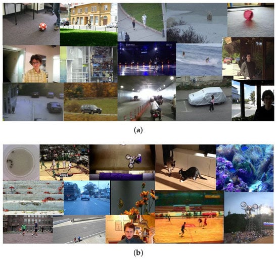 Samples from the Visual Object Tracking (VOT) 2014 (a) and 2018 (b) challenge datasets.