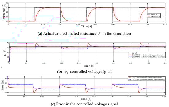 Table 7 shows the numerical and experimental errors when using the ZAD-FPIC controller without load estimator. From the experimental results it is observed that for smaller values of the load resistance, the error tends to increase because there are losses in the experimental circuit and these still need to be estimated.