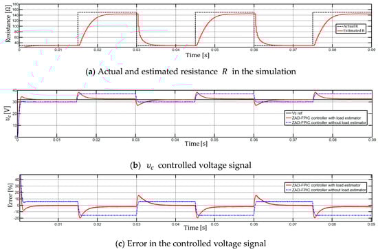 In ref. [18], the parameters estimation of a buck converter with digital PWM control and ZAD strategy is presented. A visualization approach was applied in [19], where the output voltage of a buck power converter is controlled by means of a quasi-sliding scheme. There, the authors introduced the load estimator by means of least mean squares to make the ZAD-FPIC control feasible in load variation conditions, and comparative results for the buck converter with different control strategies (including: Sliding Mode Control (SMC), Proportional–Integral–Derivative (PID) and ZAD-FPIC) were presented.
