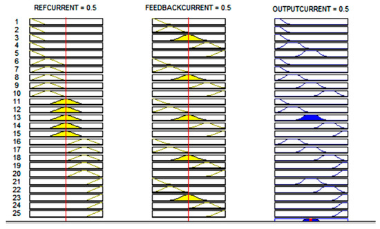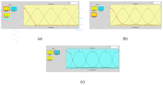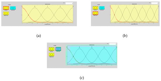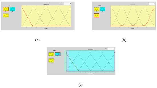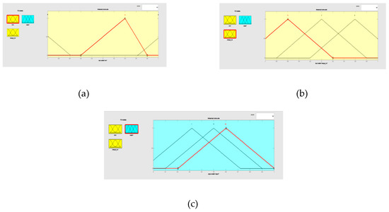 The input and output membership functions for the above-mentioned rule is given below in Figure 14 a–c respectively.