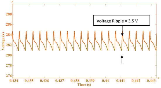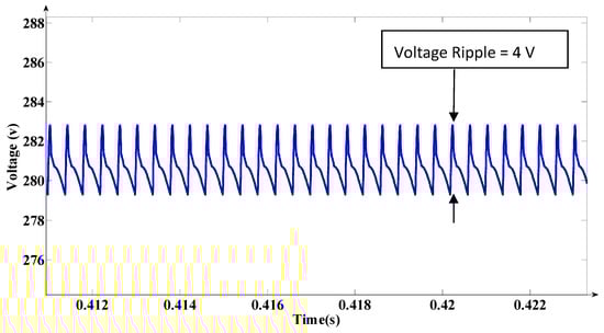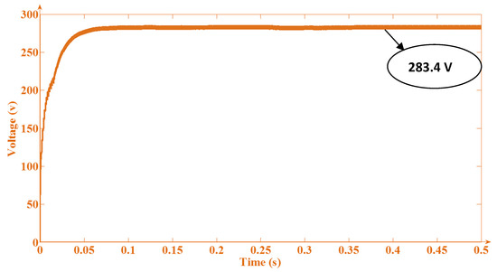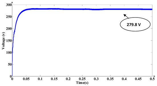 From Figure 37, it is clear that the output voltage is maintained constant at a value of 279.8 V and has nominal output voltage ripple.