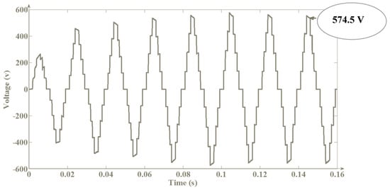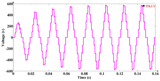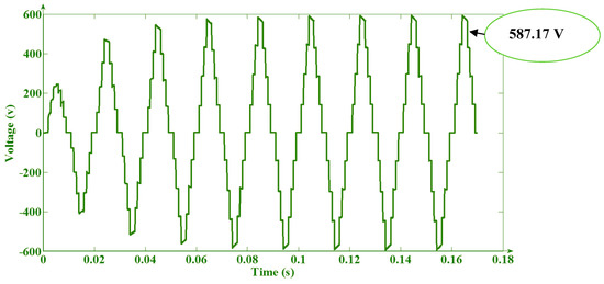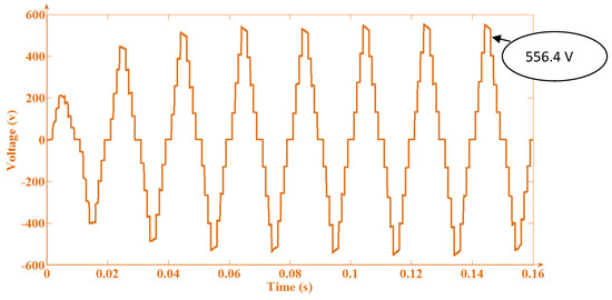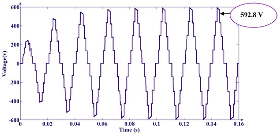 Output voltage waveform for multilevel inverter interfaced with hybrid controller-4-based BDC.