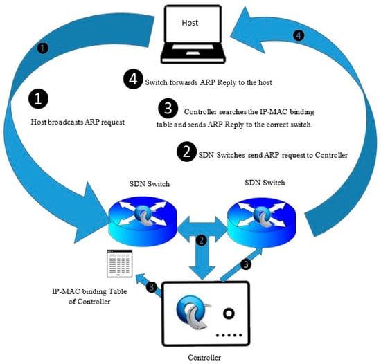 - Nehra, A.; Tripathi, M.; Gaur, M.S. FICUR: Employing SDN Programmability to Secure ARP. In Proceedings of the IEEE 7th Annual Computing and Communication Workshop and Conference, Las Vegas, NV, USA, 9–11 January 2017; pp. 1–8. [Google Scholar]