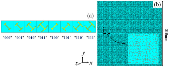 (a) Eight basic units, (b) the 3-bit coding metasurface.