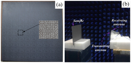 (a) The fabricated random 3-bit coding PCM; (b) experimental setup for verifying RCS reduction.
