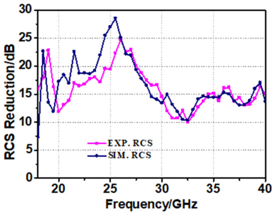 Comparison of RCS reduction measured by simulation and experiment.