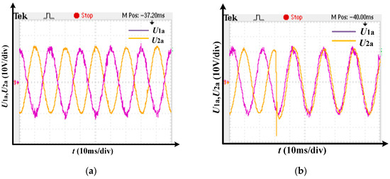 To verify the proposal, experimental results are presented in this section. There are two converters in the laboratory for parallel operation to verify the converter parallel strategy. Single converter adopts the V/F control strategy to ensure that the output voltages of the two converters have the same amplitude and frequency. The experimental system is described in Figure 12.