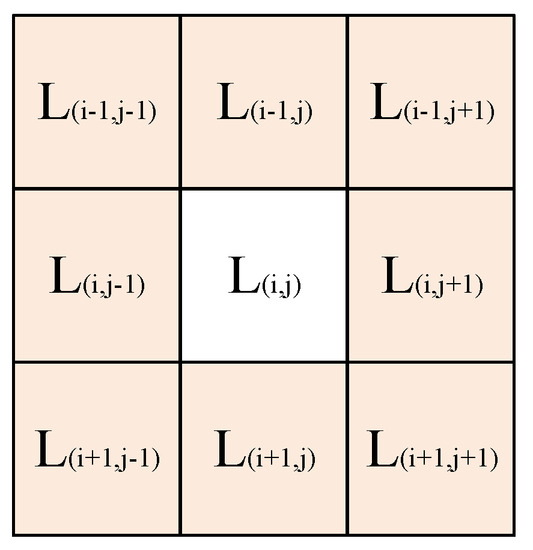 If is used to represent the classification result label of a central pixel of the hyperspectral image, the class labels of the central pixel and the eight neighborhood pixels are shown in Figure 8.