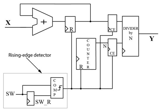 The rest of the paper is organized as follows: Section 2 describes the digital schematic of the proposed filters, represents their mathematical formulae, and makes brief theoretical assumptions of the expected results. Section 3 shows the results of the simulation and implementation of the filters, compares utilization results, and gives some recommendations about the choice of the appropriate approach depending on the input waveform and the aim of the designer. Lastly, conclusions are given in Section 4.