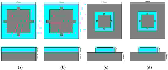 Diagram of four differently sized antenna elements: (a) E1; (b) E2; (c) E3; (d) E4.